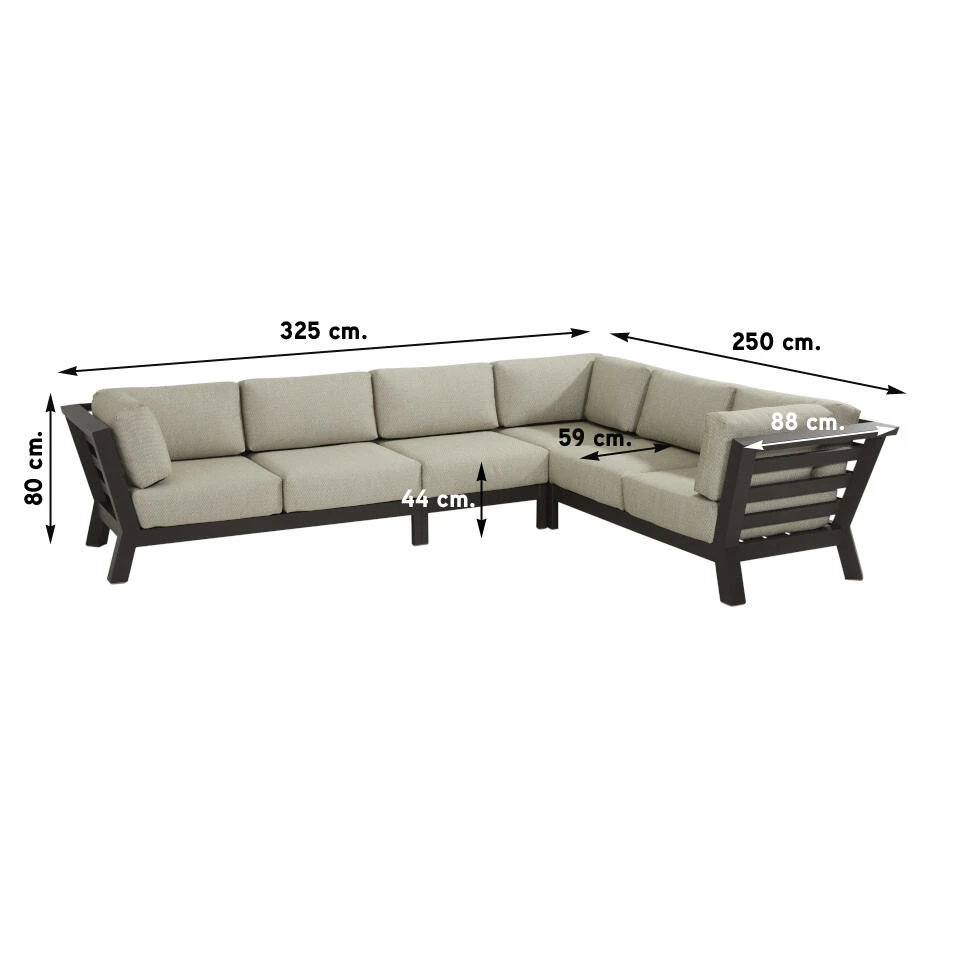 De Meteoro loungeset 4-delig bestaat uit een linkse 2-zits bank, een rechtse 2-zits bank, een middenelement en een hoekelement. Deze 4-delig loungeset biedt plaats aan 6 personen. Door zijn neutrale kleurstelling is de 4 Seasons Meteoro loungeset perfect te combineren bij diverse loungetafels. Hierbij kun je denken aan loungetafels met een aluminium tafelblad maar ook met bijvoorbeeld een teakhouten tafelblad.