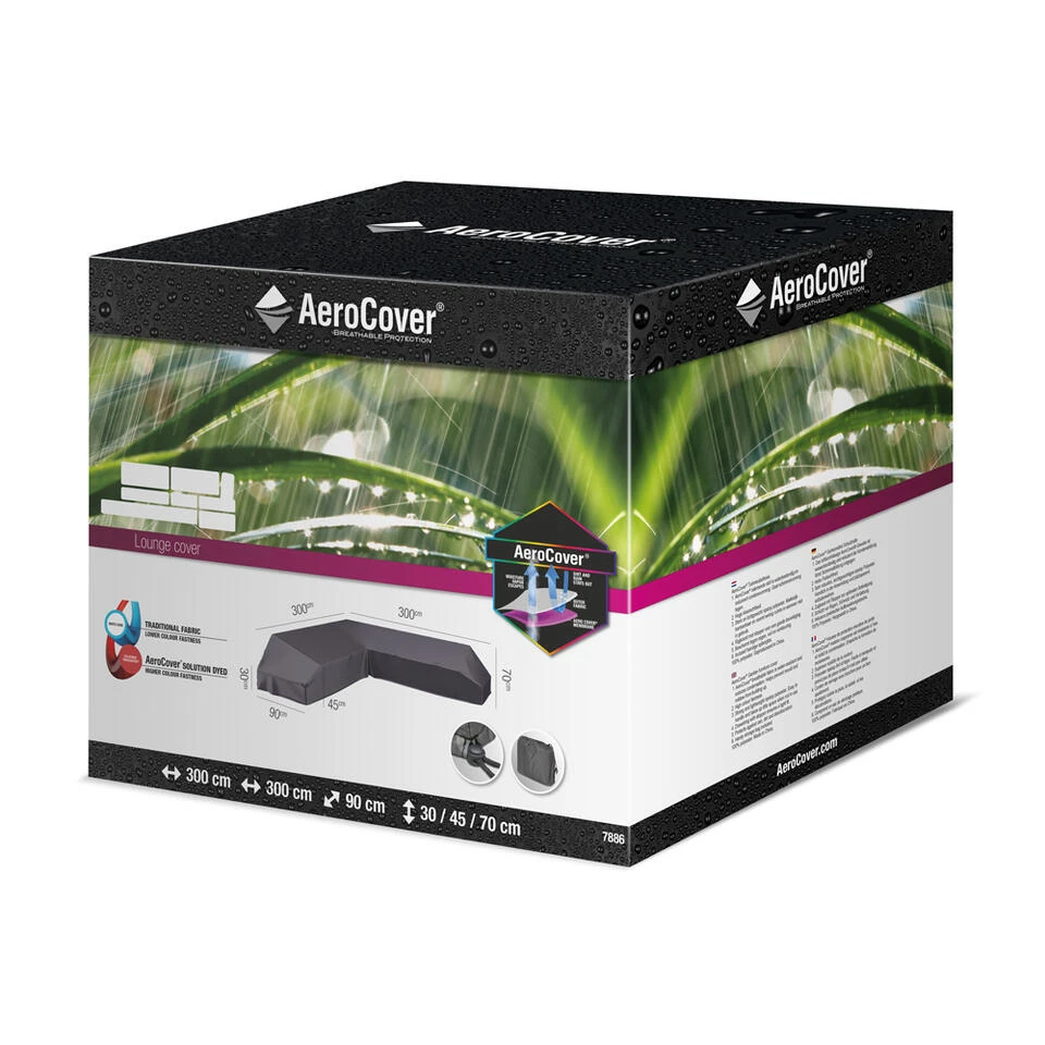 Bescherm uw loungeset optimaal met de platofrm loungesethoes van het bekende hoezen merk Aerocover. Het voordeel ten opzichte van een vierkante hoes is dat er in een l-vormige hoes geen waterzakken kunnen ontstaan en de hoes dus ook niet door kan gaan lekken. Het materiaal van de hoes is ripstop polyester, dit is erg soepel en stevig. Het rasterpatroon zorgt ervoor dat als er in de toekomst een gat in de hoes zal komen deze niet door kan scheuren. Het ademende effect gaat condens en schimmelvorming tegen en zorgt er uiteraard ook voor dat uw kussens mooi droog blijven. Als u de kussens onder de hoes laat liggen is het wel raadzaam om regelmatig te luchten.