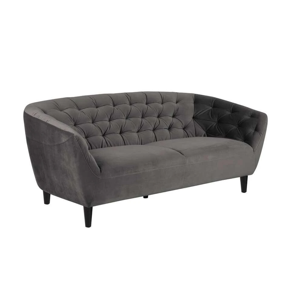 De donkergrijze kleur straalt warmte en rust uit en daarom heeft deze bank niet veel extra’s nodig. Je kunt er natuurlijk kussens in leggen, maar ook zonder accessoires is deze bank helemaal af. De fluwelen stof voelt zacht en fijn aan. Fluweel heeft een subtiele glans en dat geeft jouw interieur net dat beetje extra.