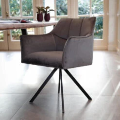 Moderne, zeer comfortabele bureaustoel met wielen. Voeg deze elegante bureaustoel toe aan je werkruimte. Hij is uitgevoerd in fluweel van goede kwaliteit en daardoor aangenaam zacht. Schuimvulling en schuine armleuningen zorgen voor maximaal comfort. De gaslift en metalen poten op een stervormig onderstel zorgen voor stabiliteit.