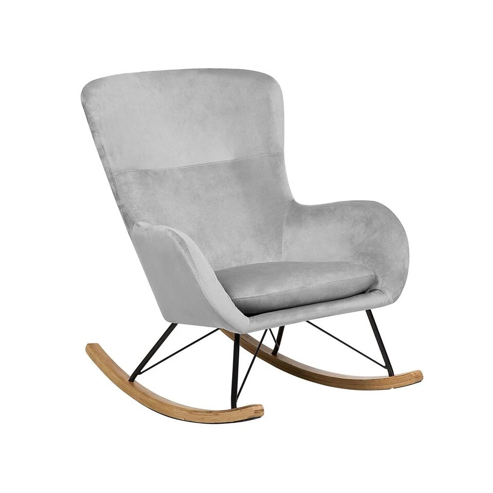 Schommelstoel met fluwelen bekleding. Een klassieke schommelstoel, maar dan net even anders. Met de ongebruikelijke combinatie van de moderne, fluwelen zitting en het klassieke onderstel, is deze zetel een blikvanger in veel verschillende woonruimtes. Plaats hem voor de open haard of zet hem in de kinderkamer voor een huiselijke sfeer.