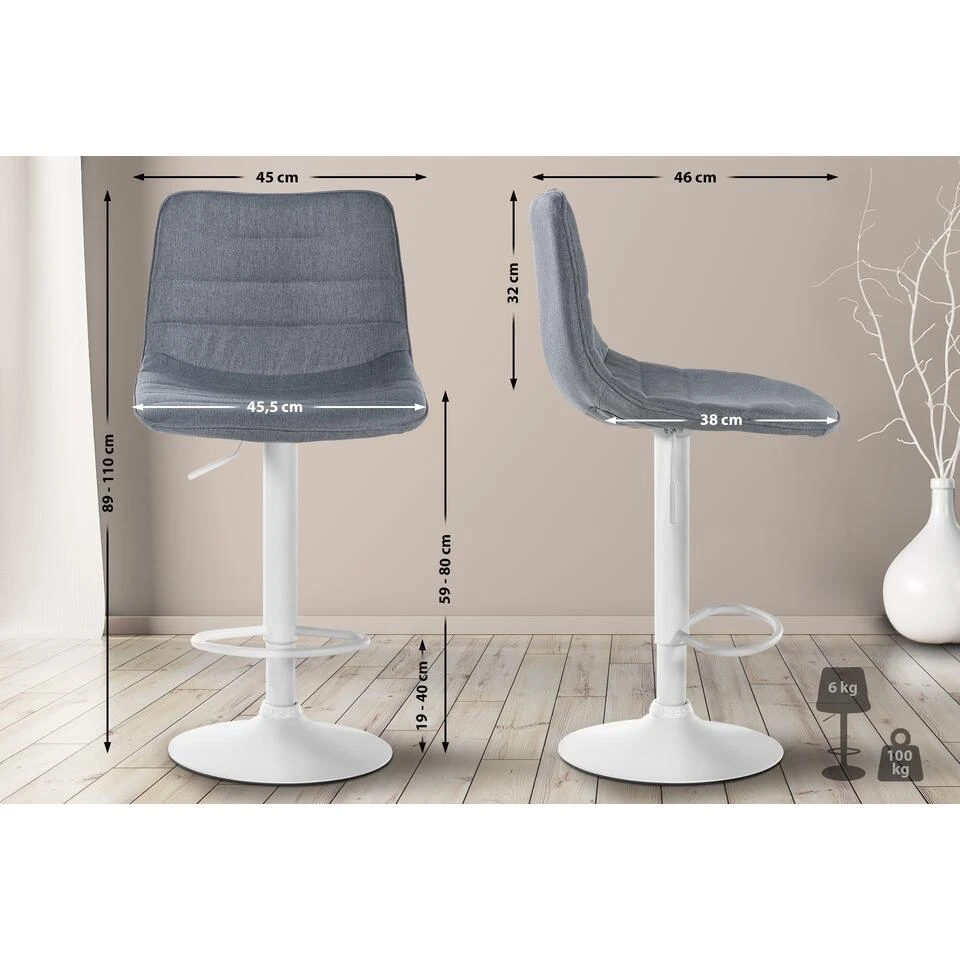 De hoogte van onze kruk is traploos instelbaar door middel van een gasveer en de zitting, inclusief de voetsteun, kan 360° worden gedraaid. Waardoor hij ideaal is voor elke bar. Dankzij de vrij te kiezen kleurencombinaties krijgt u de perfecte barkruk voor uw woonkamer, eetkamer of keuken.