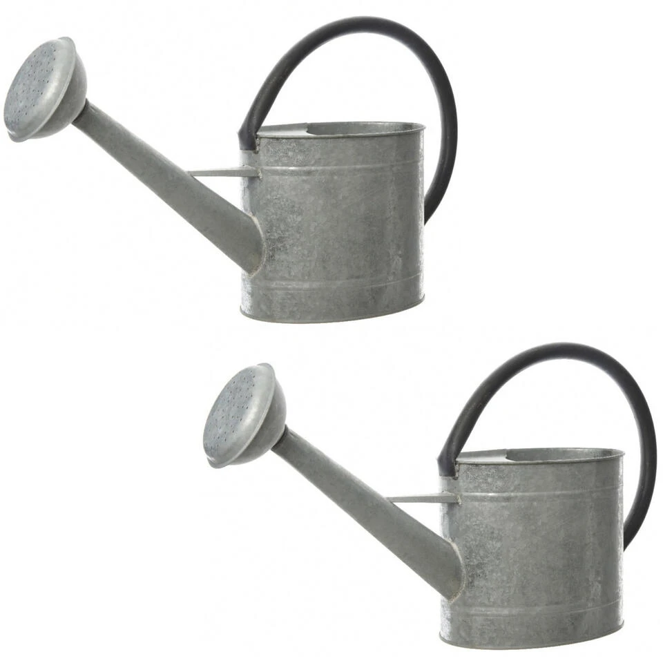Grijze tuinbewatering/decoratie gieters van zink 2,5 liters. Deze zinken gieter kunt u gebruiken om de plantjes water te geven maar is ook geschikt om bijvoorbeeld een plantje in te doen en ter decoratie in de tuin neer te zetten. Formaat: ongeveer 73 x 45 cm. Materiaal: zink. Inhoud: 2,5 liter.