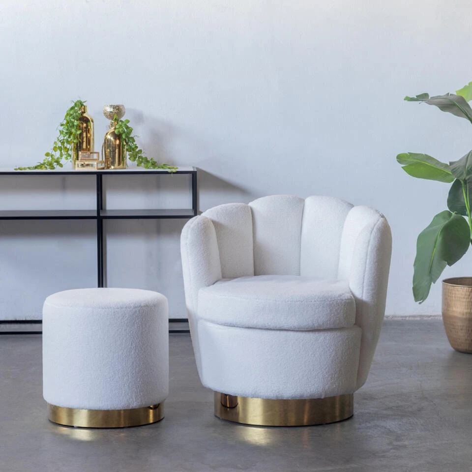 Giga Meubel Teddy Poef Wit – Met Gouden Onderstel – Poef Quinty