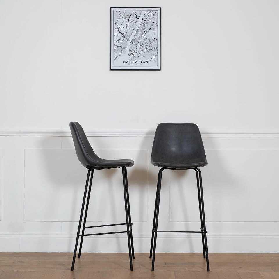 De set van 2 LUCIEN krukken zal perfect zijn rond uw hoge tafel of voor uw bar. De metalen structuur zorgt voor stabiliteit en stevigheid, terwijl de zitting en de voetsteun comfort en welzijn garanderen. De combinatie van vintage en trendy materialen en kleuren zal een retro tintje aan uw interieur geven.