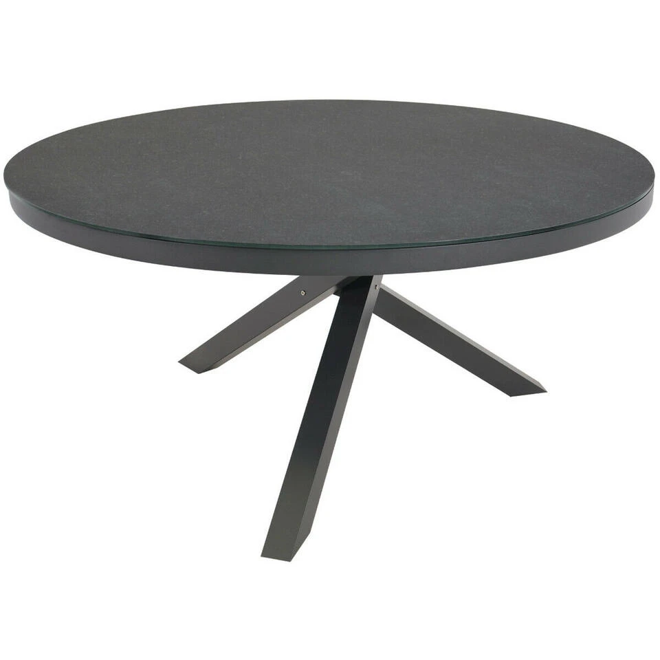 Geniet van het buitenleven met deze royale Mojito tuintafel uit de collectie van het woonmerk Les! Deze prachtige terrastafel is voorzien van een rond tafelblad met een diameter van 150 cm, waardoor hij voldoende plaats biedt aan het hele gezin. Dit tafelblad is uitgevoerd in keramisch glas met een dikte van 8 mm en heeft als afwerking een gemixte grijze kleur gekregen. Onder dit tafelblad bevindt zich het speelse aluminium frame met een matte antracietkleur als afwerking. Plaats tuintafel Mojito in de serre, onder de veranda of op het terras en geniet van gezellige zomerdagen met familie en vrienden. Deze tafel is ook verkrijgbaar in twee andere varianten.