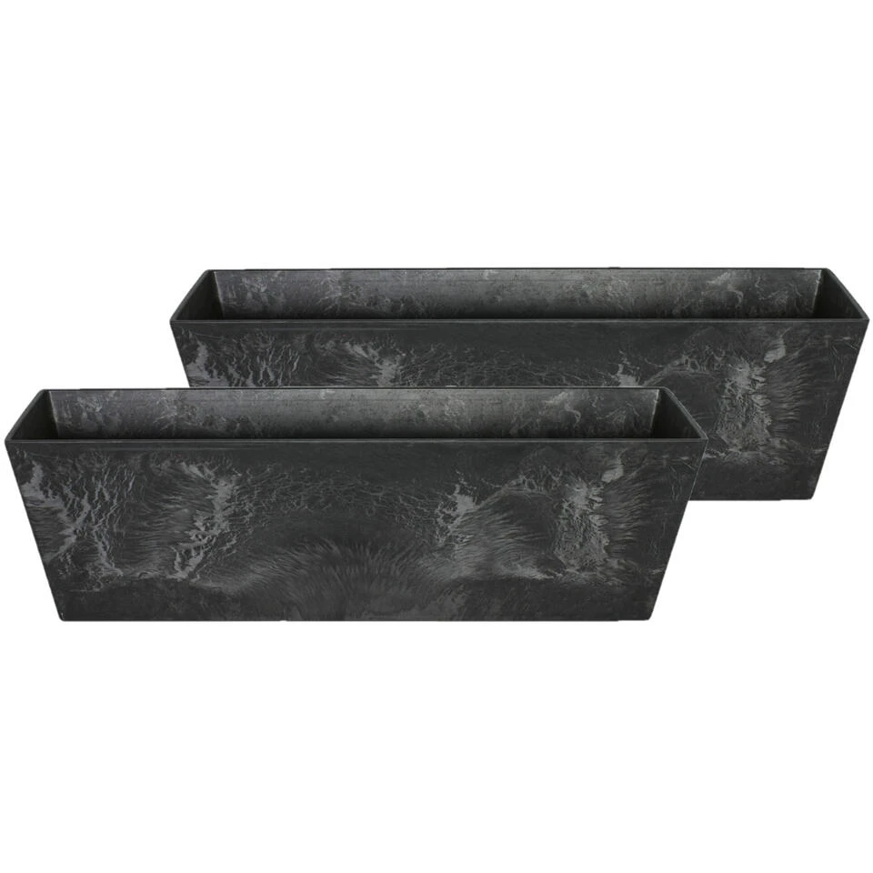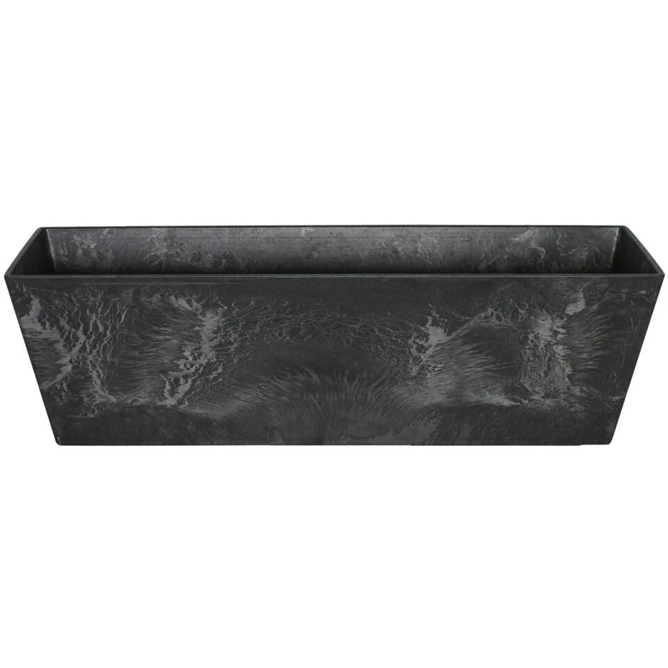 Bloempot/plantenpot balkonbak van gerecycled kunststof en steenpoeder in de kleur zwart/betonlook met diameter 74 x 17 cm en hoogte 17 cm. Artstone Ella serie potten voor buitenplanten, binnenplanten of kunstplanten. Een unieke duurzame mix van materialen dat nu geen afval is, maar een prachtige duurzame bloempot, 100% recyclebaar. Deze serie potten hebben een eigen drainagesysteem onderin de pot met water plug zodat ze geschikt zijn voor binnen en buiten.