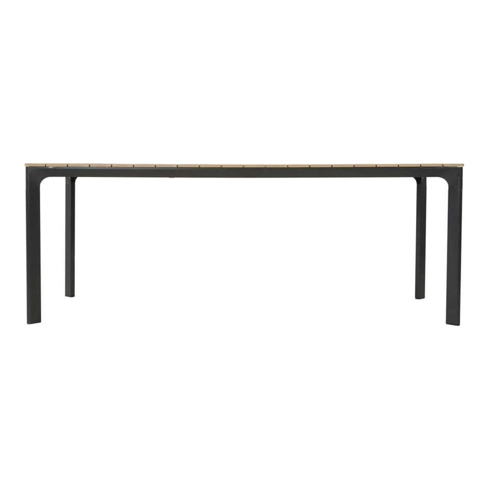 Tafel Arezzo is een mooie, grote rechthoekige eettafel voor buiten. De tafel heeft een prachtige kleur: het blad is bruin met een teaklook, het frame is antraciet gekleurd. Het frame is gemaakt van sterk aluminium, het blad van polywood. Tafel Arezzo heeft een totale afmeting van 200x90x74 cm. Genoeg ruimte om heerlijk buiten te drinken en eten wanneer het weer het toelaat!