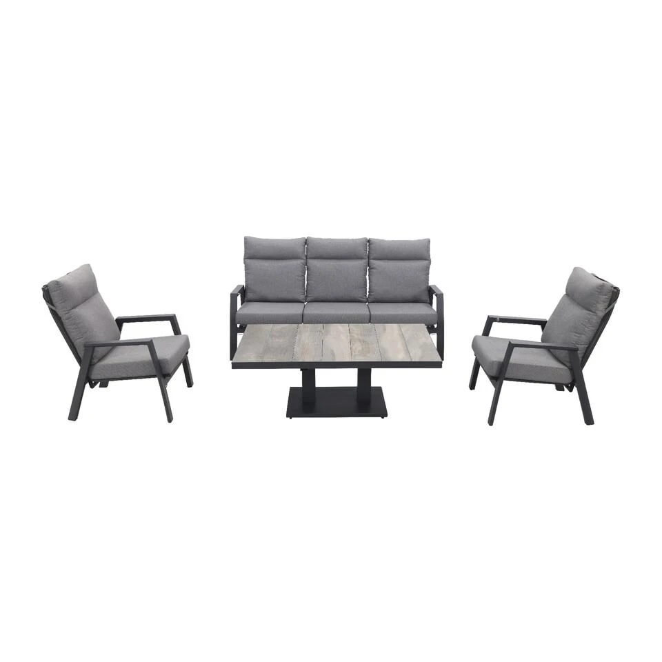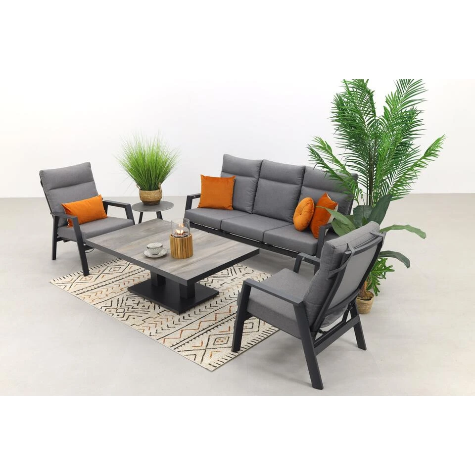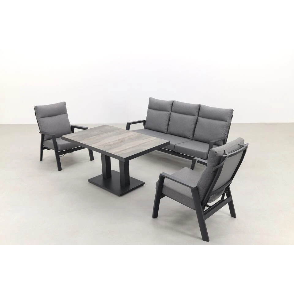 VDG Azoren/Jersey Stoel- 3-zitsbank Loungeset Verstelbaar – Antraciet