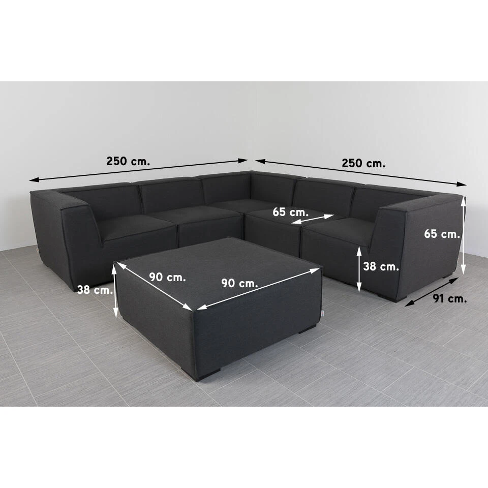 De Liberty Sunbrella loungeset bestaat uit allemaal losse elementen. Bij dit model zijn dat 3 hoekelementen, 2 middenelementen en 1 hocker. Deze hocker kan gebruikt worden als tafel, voetenbankje of extra zitplek. Variaties genoeg! De decoratie artikelen op de afbeeldingen zijn niet inbegrepen.